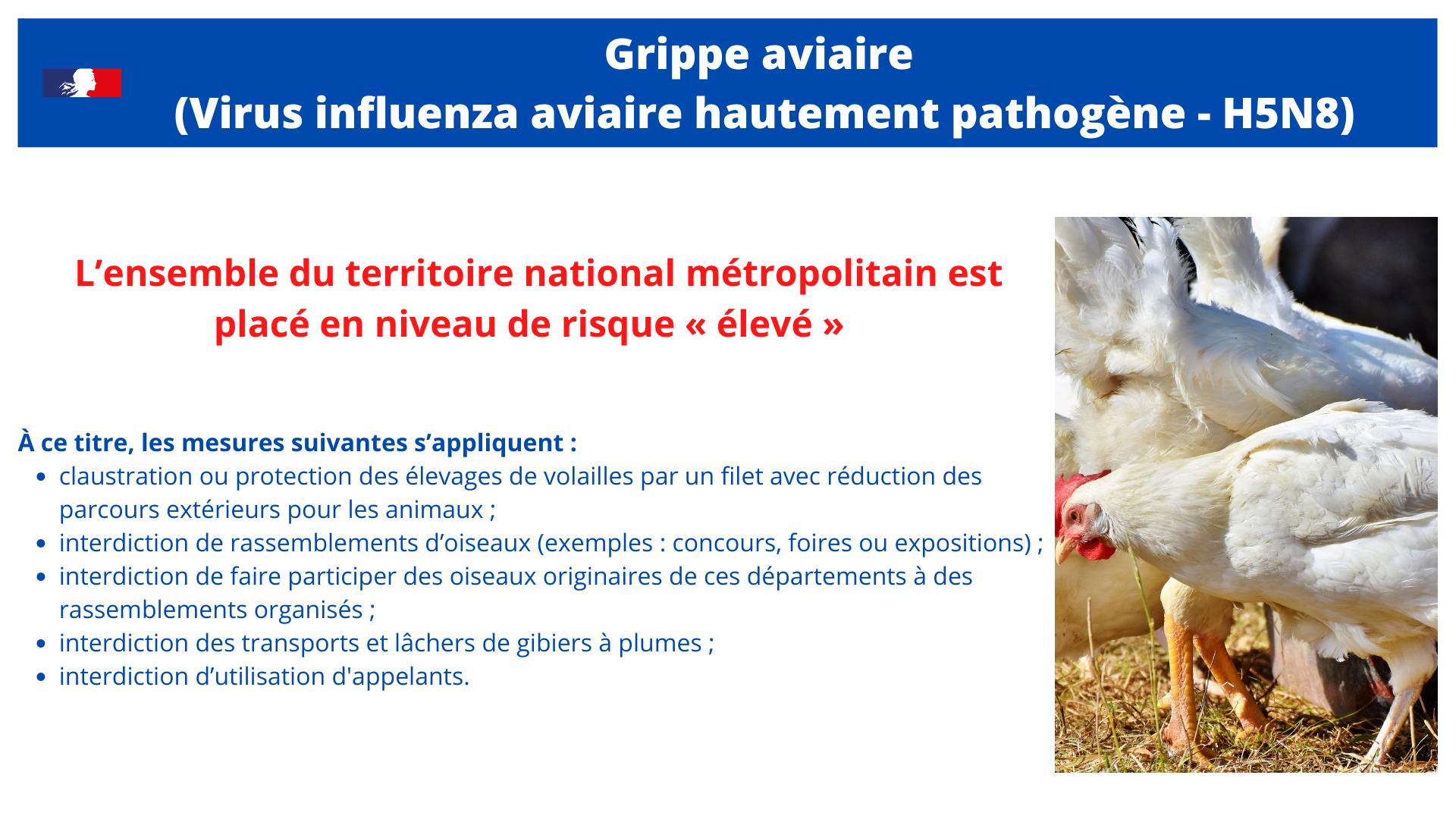 NIVEAU RISQUE ELEVE GRIPPE AVIAIRE AU 18 NOVEMBRE 2020