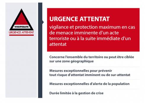Le Gouvernement vient de porter le plan VIGIPIRATE au niveau urgence attentat sur l'ensemble du territoire national.
