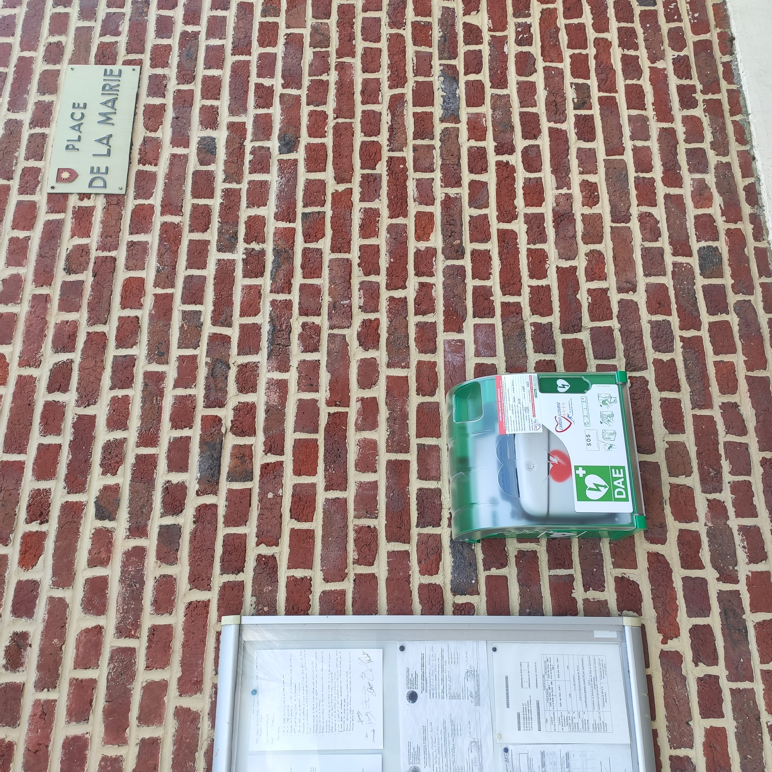 Le défibrillateur est situé à la droite de l'entrée de la mairie.